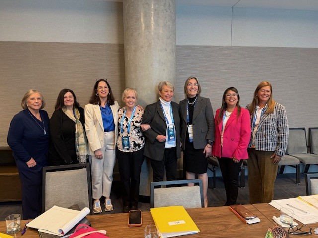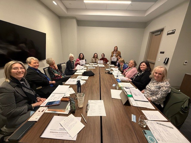 Lydia Hull, Pamela Swendseid- Scholarship Chair, Allison Coppel chair elect, Margaret Mansanti past chair, Barbara Filas, Jaqueline Herrera Chair, Mayerling Zambrano, Susana Palomino International Chair. |